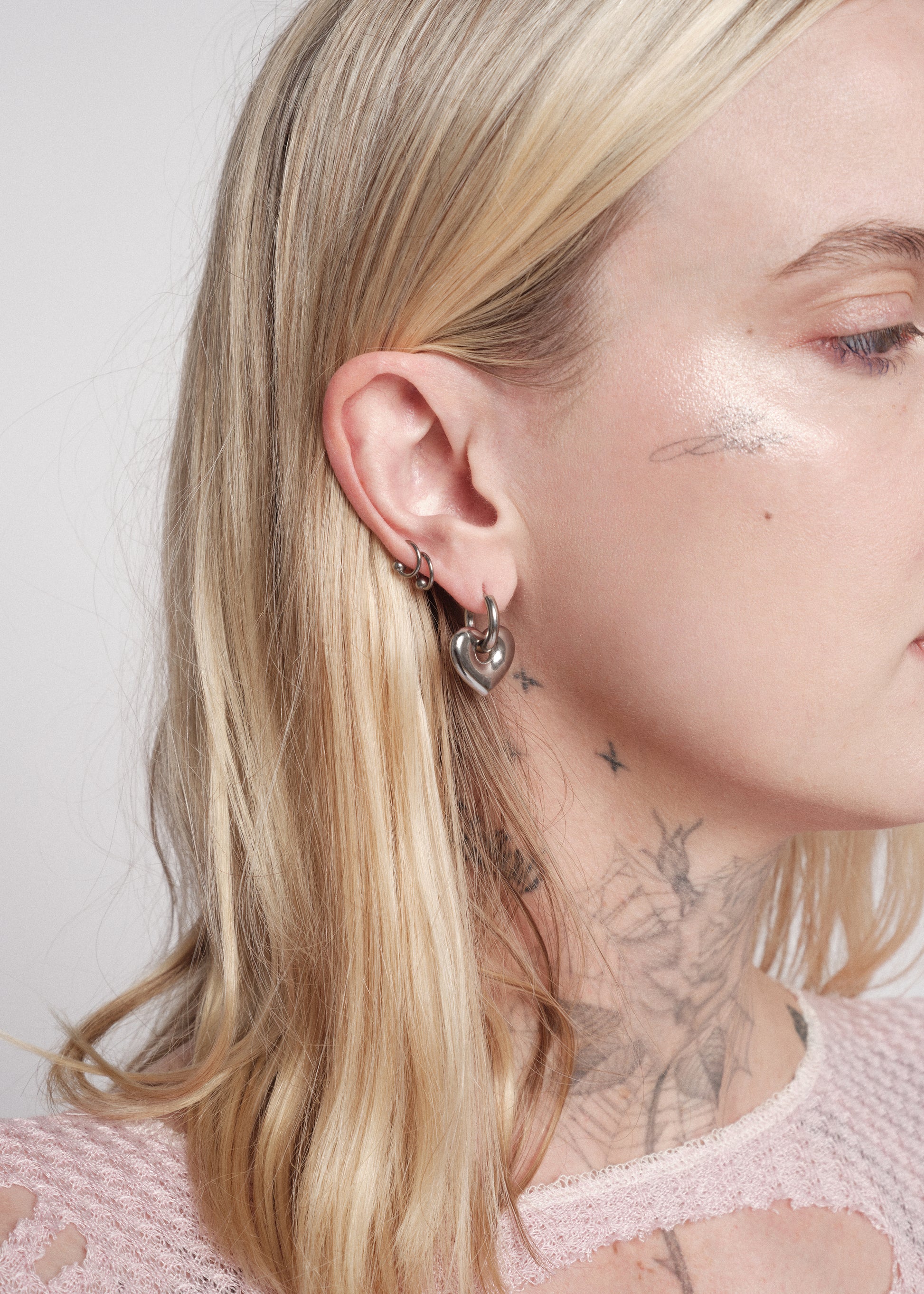 Stainless steel huggie earrings & stainless steel heart pendant.